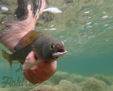I caught and released this WCT from a tributary to the upper Kootenay River that drains from the East side of the Rocky Mountain Trench. Notice how this fellow has an olive hue, unlike the above photo which was captured from a drainage located on the West side of the Trench.